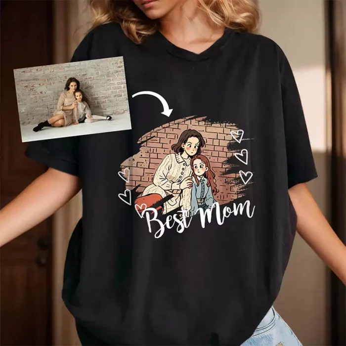 Celebrate special moments with a one-of-a-kind Custom Cartoon Portrait Shirt! This personalized T-shirt transforms your cherished family photo into an adorable cartoon-style illustration. A perfect gift for moms, dads, grandparents, or anyone who loves creative and meaningful apparel.