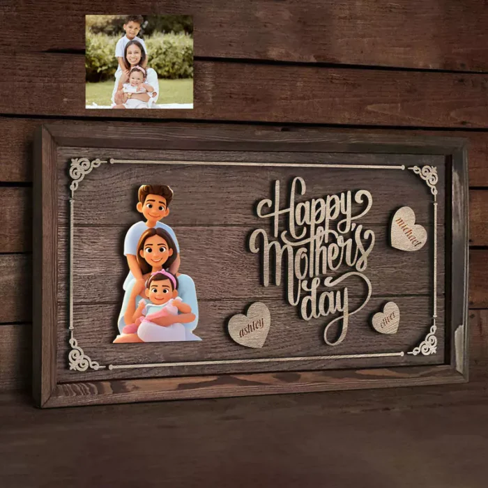 This natural wood painting with the names of family members will make a decorative and meaningful gift for your mother.
